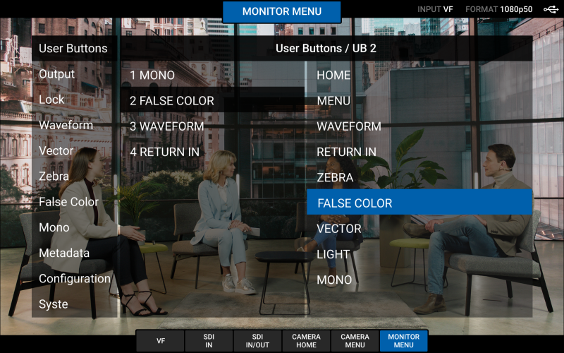 Schneller Input-Switching zwischen SDI-Eingängen über dedizierte Hardware-Buttons und optionale On-Screen-Controls ohne Workflow-Unterbrechung